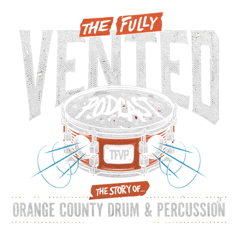 Classic black tee featuring drum artwork on front chest and "The Fully Vented" logo on back.